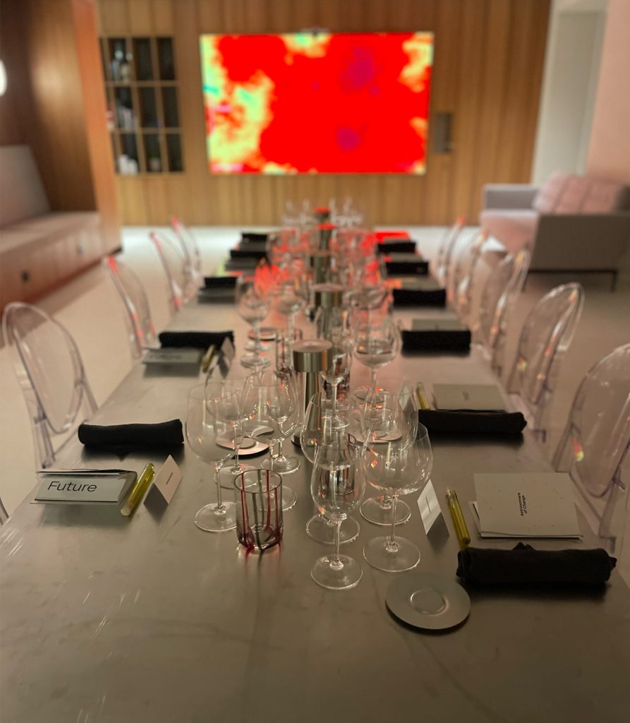 An exclusive experimental dinner for 12 guests, “G-Astronomers of Change,” held at Torre Picasso in Madrid.